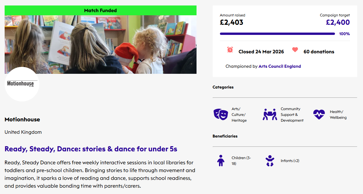 Thanks to your generosity, we’ll be bringing stories and dance to children under 5 in local libraries.